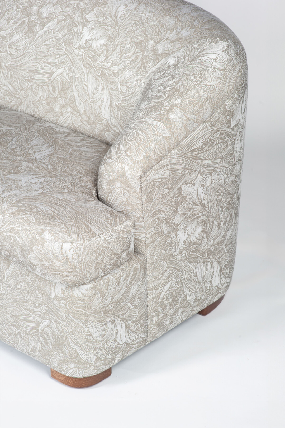 A contemporary classic with a distinctive twist, ths sofa pairs the refined elegance of the Charlotte James Mara frame with the textural richness of Timorous Beasties’ Stucco All Over Jacquard. Sculptural and streamlined, the Mara’s gently sloped arms and deep seat offer understated sophistication - while the architectural patterning of the upholstery adds depth, movement, and a quiet sense of drama. With its fusion of clean lines and intricate detailing, this piece brings an effortless edge to both modern and traditional interiors.