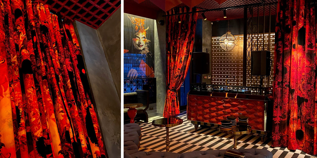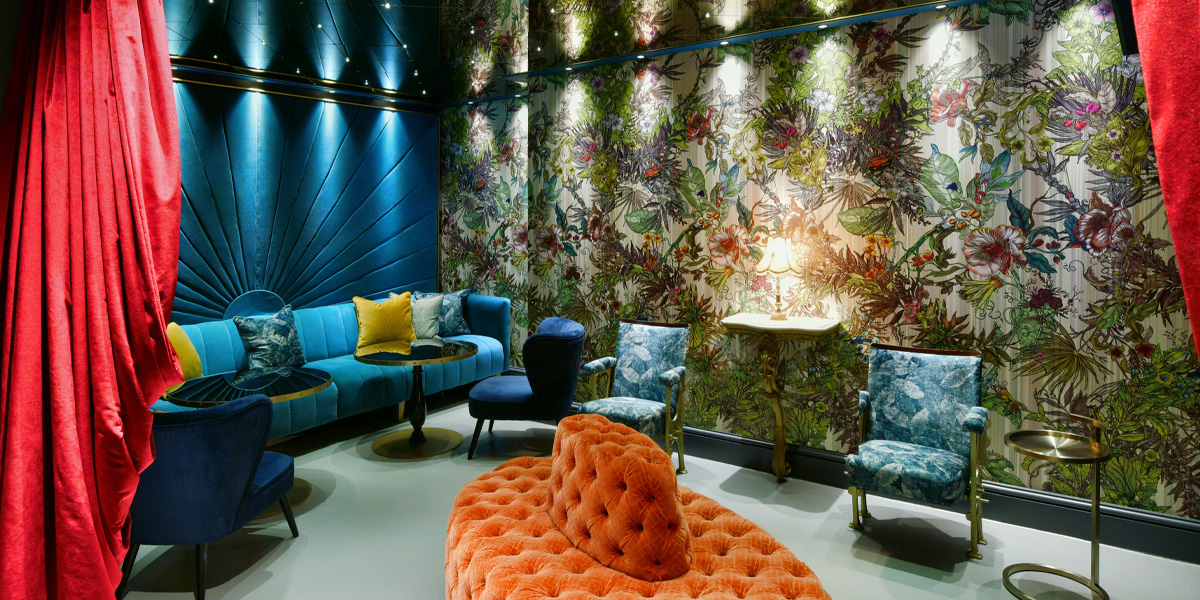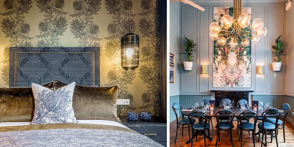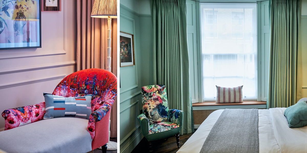 For something more daring, Château Denmark showcases bespoke Anarchy Tourmaline drapery by Grapes Design Ltd, adding a luxurious edge to one of the city’s most characterful hotels. Meanwhile, at The Lost Poet in Portobello, Cubic Studios introduced our Omni Splatt upholstery, perfectly complementing the property’s playful yet elegant aesthetic.